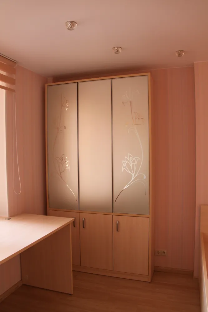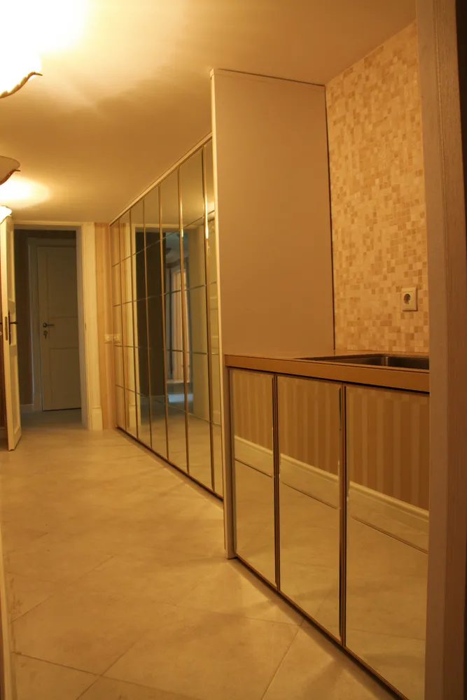 Встроенный шкаф в прихожей, фасады МДФ эмаль, с фрезеровкой под дерево (фото1)