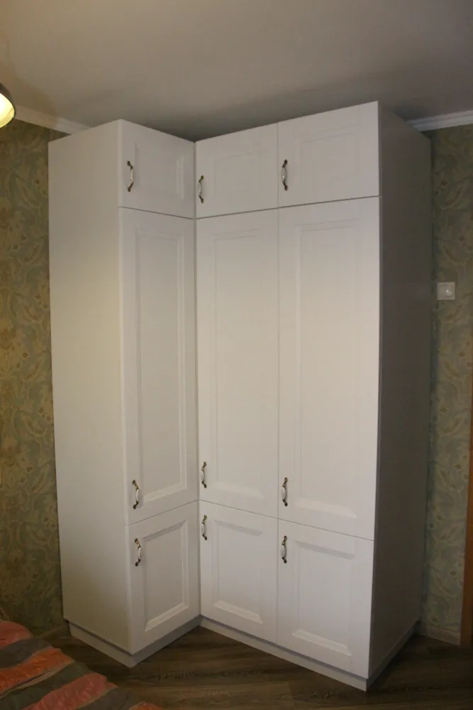 Встроенный шкаф в прихожей, наполнение фасады МДФ эмаль, с фрезеровкой под дерево (фото2)