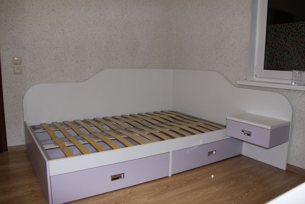 Кровать спальное место 1900х1200мм с нижними ящиками глубиной 800мм, одной прикроватной навесной тумбой Оформить заказ Оформить заказ